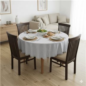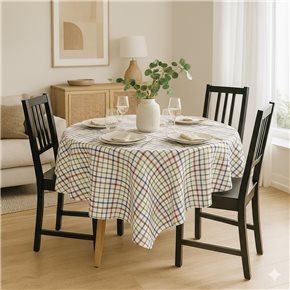 MANTEL REDONDO ALGODÓN D160CM CUADROS GRIS