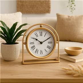 RELOJ DE MESA HIERRO D18.5X7.5X19CM SEMICIRCULO DORADO
