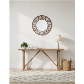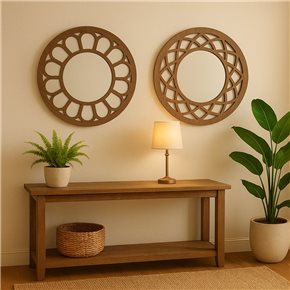 ESPEJO CIRCULAR MARCO C/DISEÑO ETNICO MADERA. D50CM