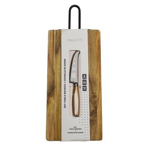SET TABLA MADERA ACACIA CON CUCHILLO DE QUESO 39X19X1.5CM
