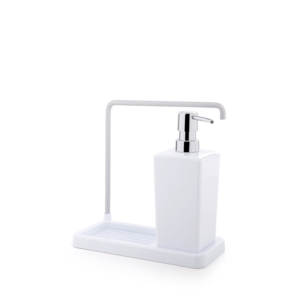 Dispensador de jabón líquido con colgador, Dimensiones del producto: Largo 21 CM x Ancho 95 CM x Alto 20 CM; Color del producto: Blanco Base antideslizante; El colgador de tela es de acero inoxidable ... y giratorio; Soporte de esponja extraíble Dispensador de jabón líquido. Leer más