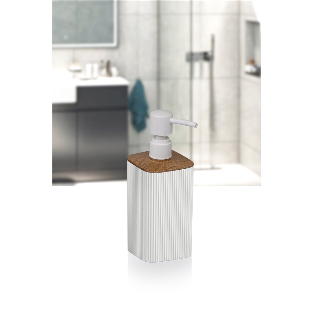 Dispen. jabon mina c/madera cuadrado rayas blanco