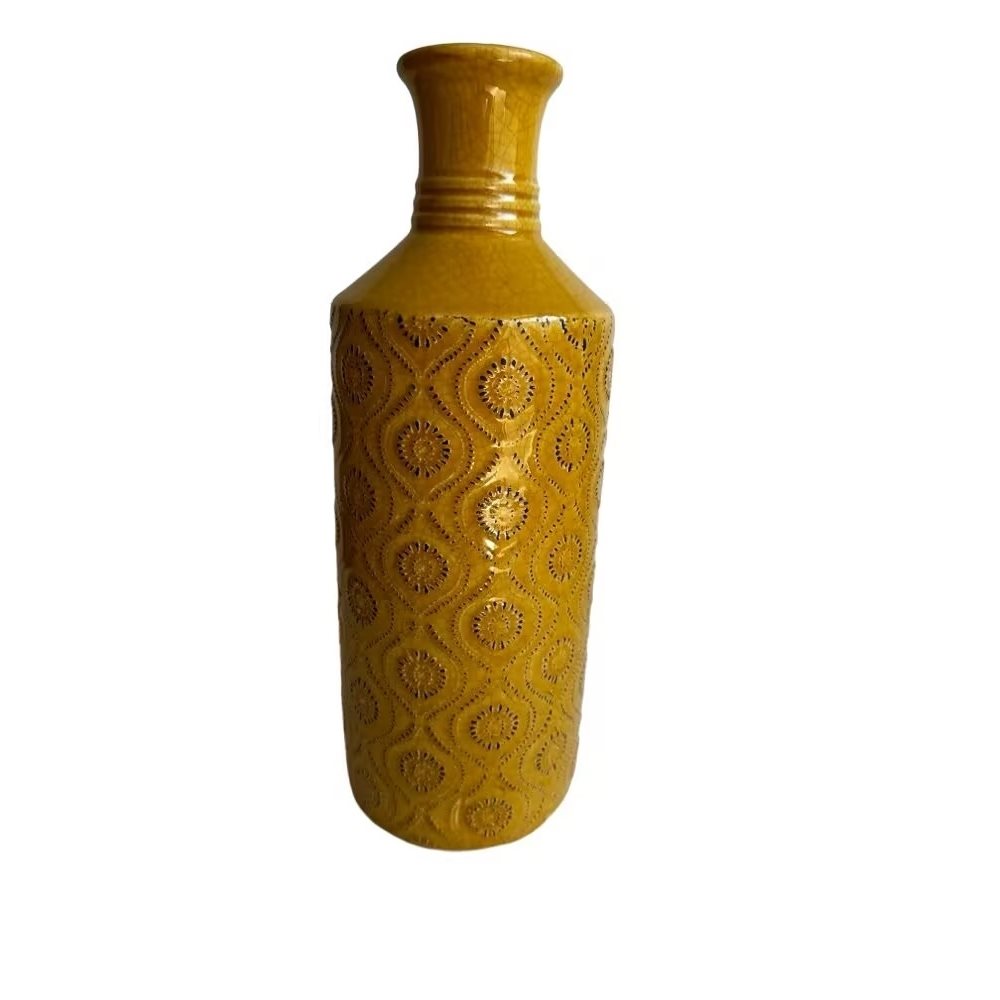 Florero étnico cerámica 11x11x31 amarillo
