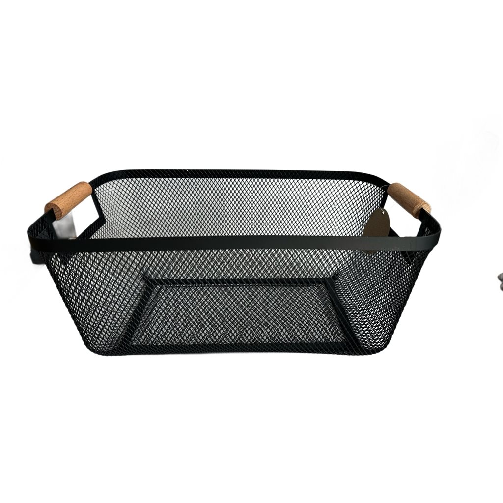 Cesto rejilla c/ asa de madera 35x23x16cm negro