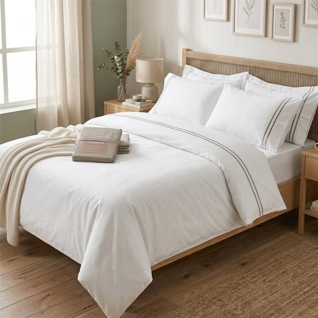 Juego sabana algodón bordado 200 hilos queen 160x200+35cm blanco cannon