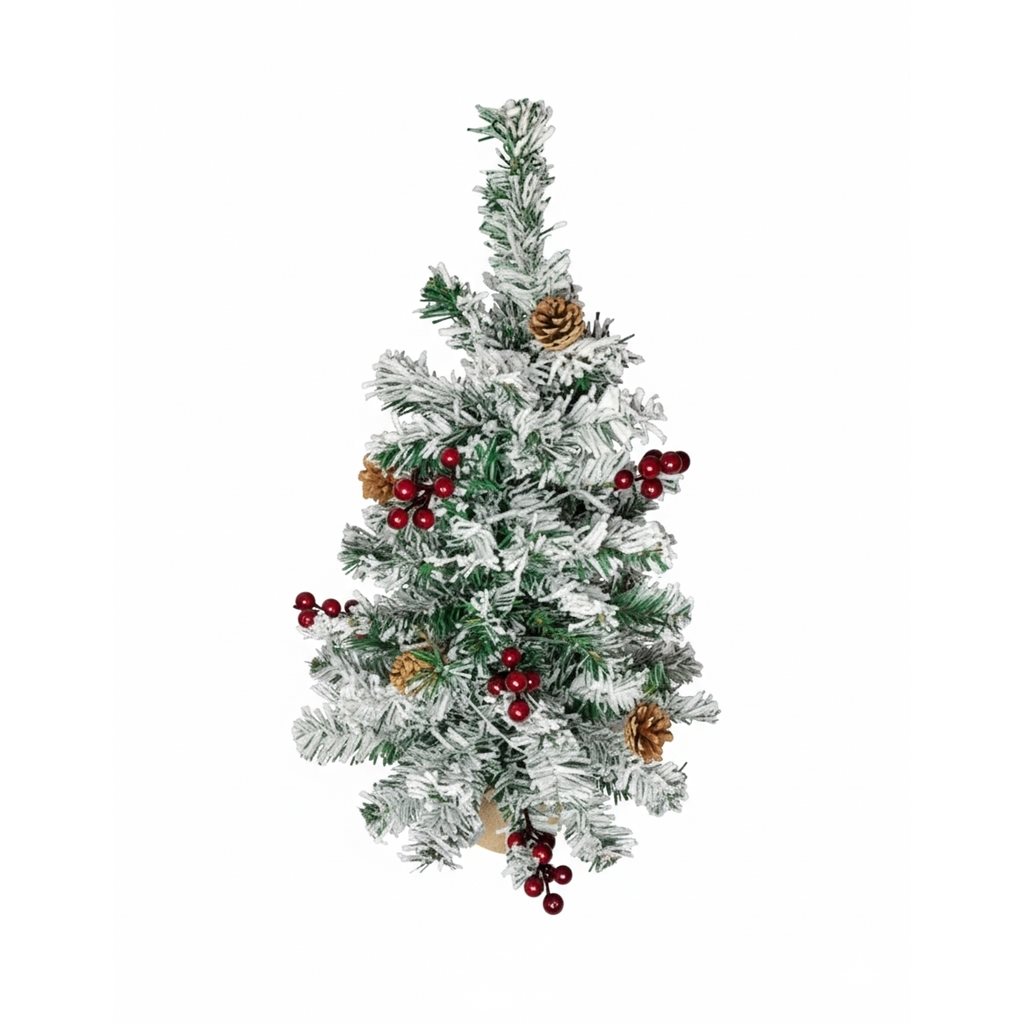 Arbol decorado nevado c/ luces base arpillera 50cm.