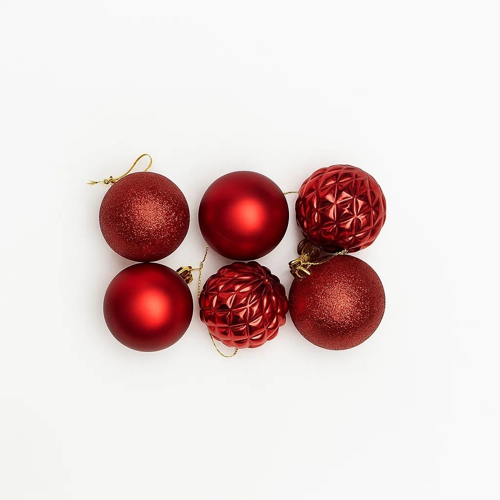 Esfera combinada relieve diamante mate 6cm x 6 unidades rojo