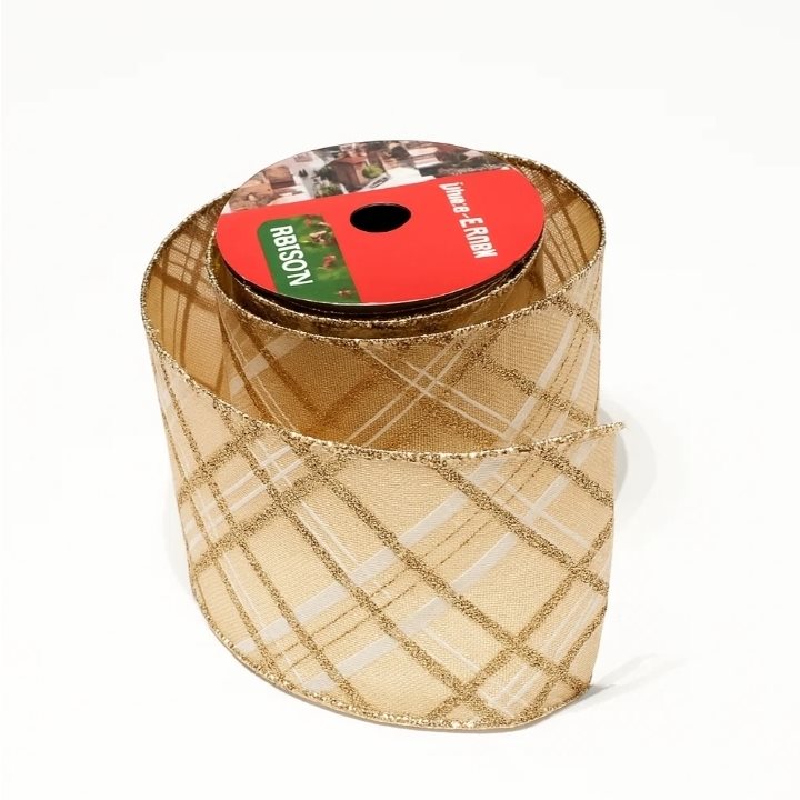 Cinta navideña lino impresión glitter 6.2 cm x 2.7 mt.