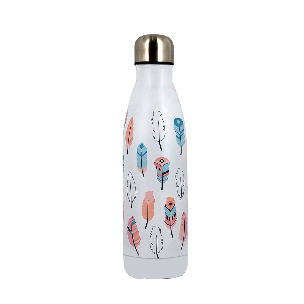 Botella termica 500ml c/anillo silicona plumas
