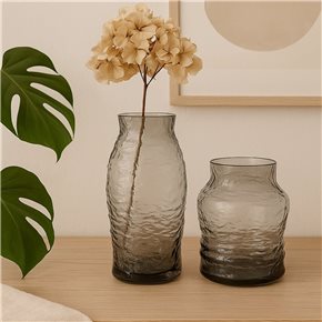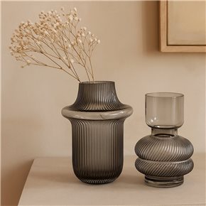 FLORERO VIDRIO LABRADO D18X20CM GRIS