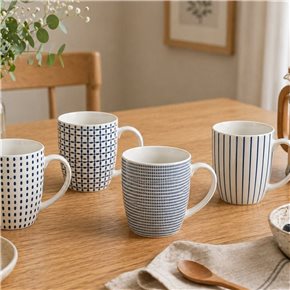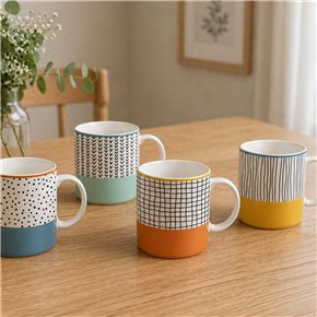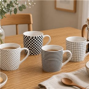 TAZA 360ML D9X8CM AC.VITRIFICADO BLANCO B/NEGRO CINSA