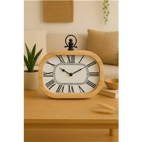 RELOJ DE MESA HIERRO D19X25X9CM BASE MADERA