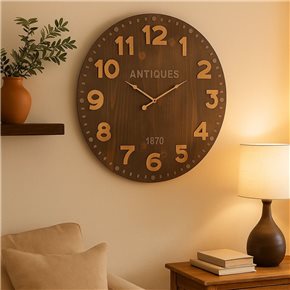 RELOJ DE PARED MDF D60X60X4.5CM MARRON ANTIQUES