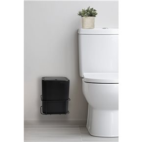 SET 2PCS BAÑO MINA PP/MADERA CUADRADO RAYAS NEGRO