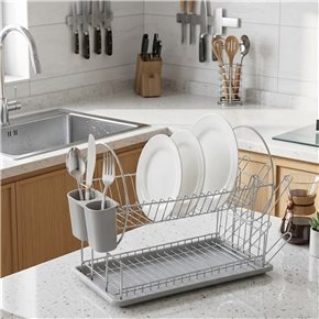 ESCURRIDOR A.CROM C/BANDEJA Y CUB GRIS. 38X23.5X32CM