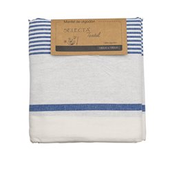 MANTEL ALGODÓN 140X180CM BLANCO/AZUL