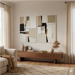 CUADRO CANVAS 30X40 MARCO ABSTRACTO BEIGE NEGRO 1