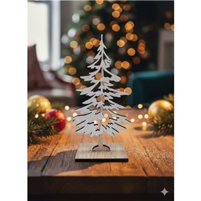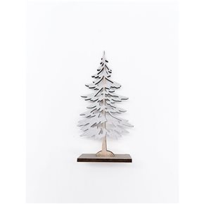 ADORNO ARBOL CALADO MADERA C/GLITTER BLANCO 16CM