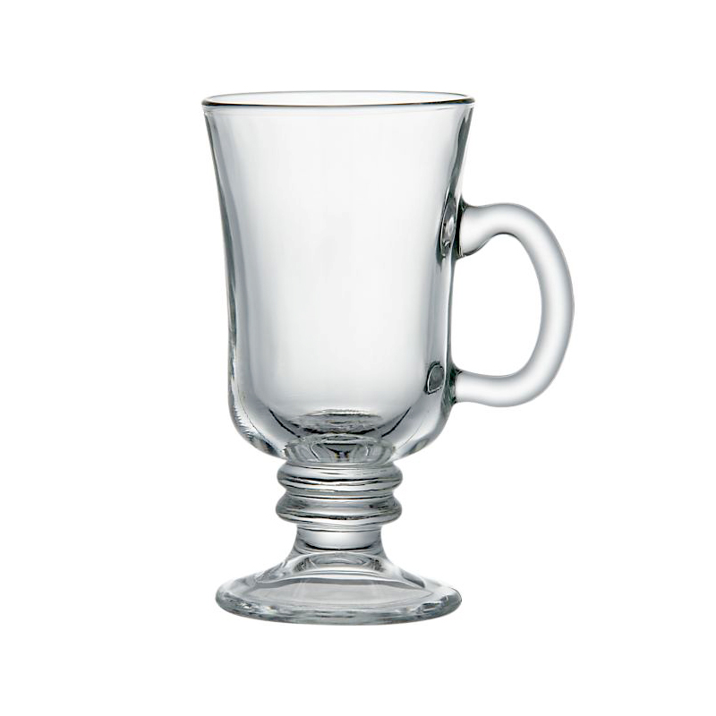 Su construcción duradera es instantáneamente evidente gracias a sus paredes de vidrio gruesas y su base corta y estable. También cuenta con un mango resistente pero cómodo que se coloca hacia la parte superior de la taza, asegurando un sorbo suave cada vez. La forma y el tacto de alta calidad de esta taza de café irlandesa la convierten en un complemento perfecto para cualquier comedor, cafetería o hotel de desayuno buffet.