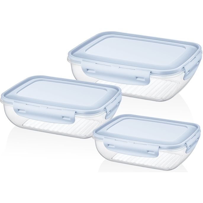 Setx3 recipientes rect. 350+650+1100 ml cook&lock
