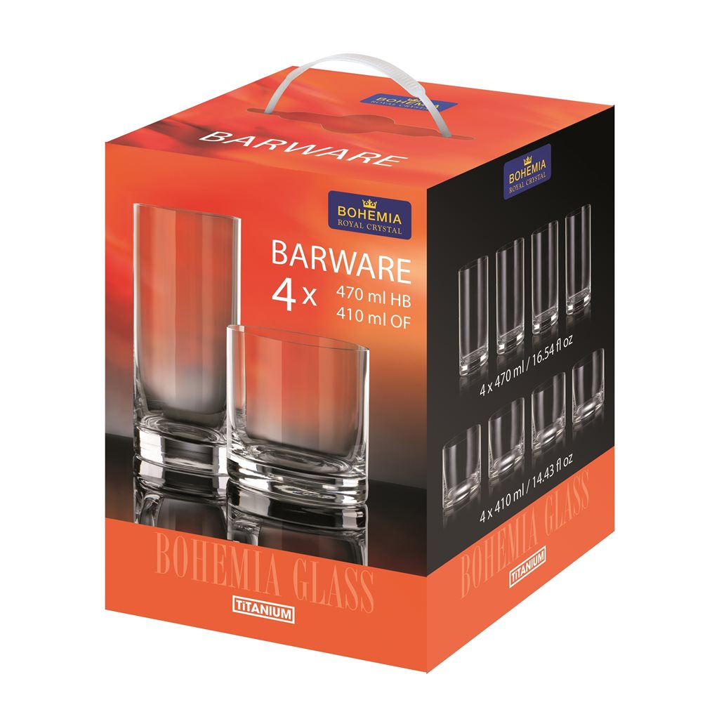 Barware 8 vasos: 4x410ml + 4x470ml bohemia