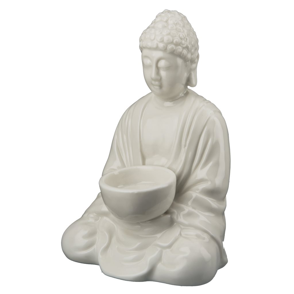 Candelabro buda de porcelana 10x12x18cm crema