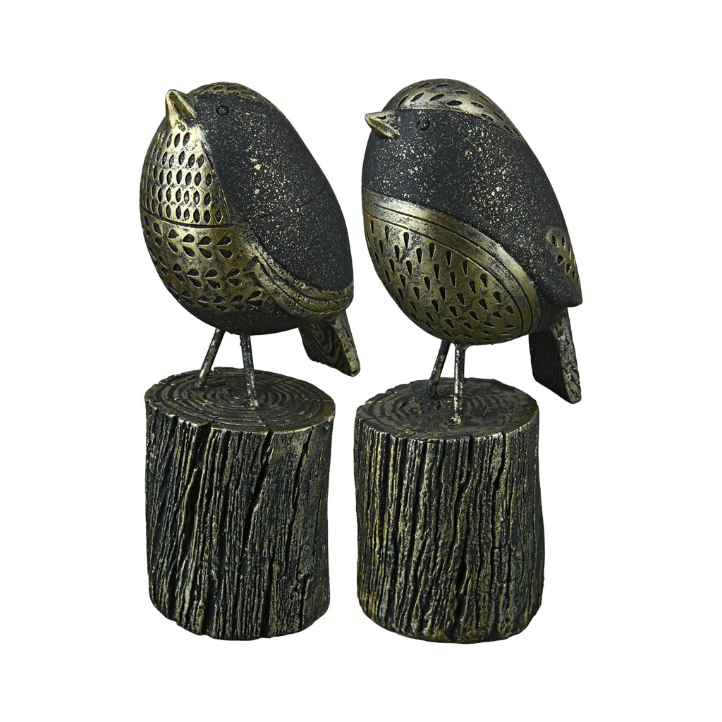 Pajaro decorativo resina 10x7x18cm negro/dorado