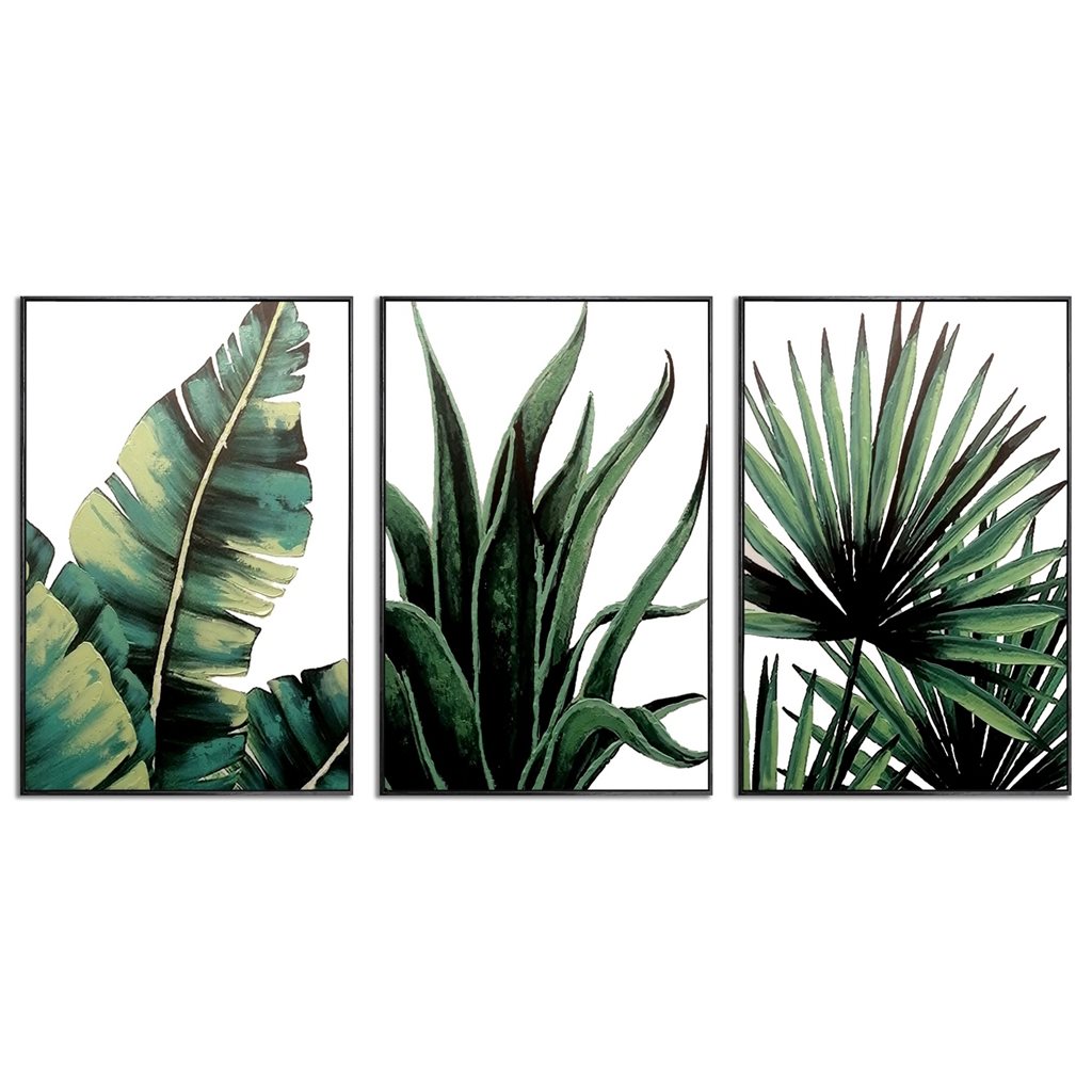 Set 3 cuadros 40x60cm marco plantas verdes