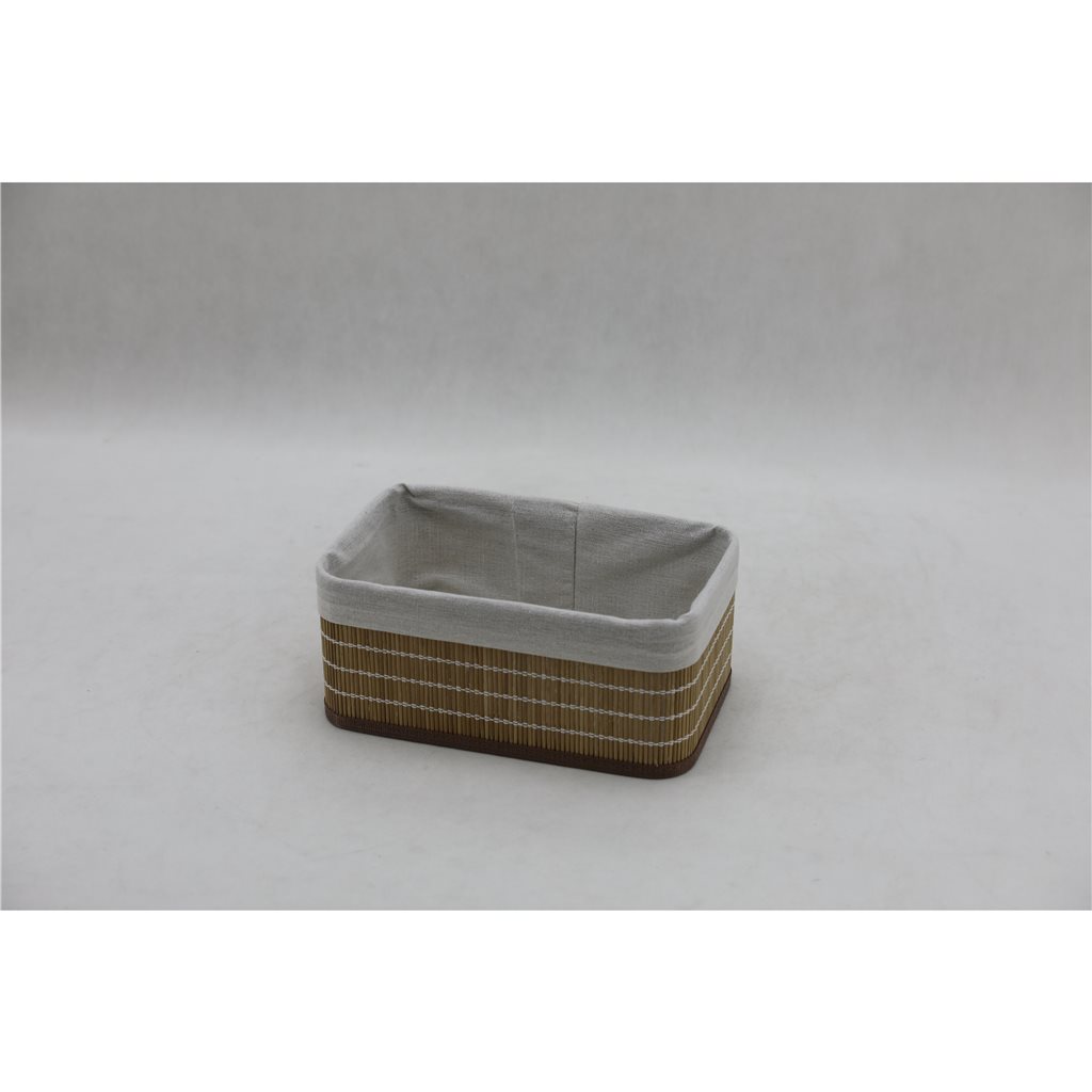Set x3 cesto rec bambú forrado tela 24x14x10cm nat
