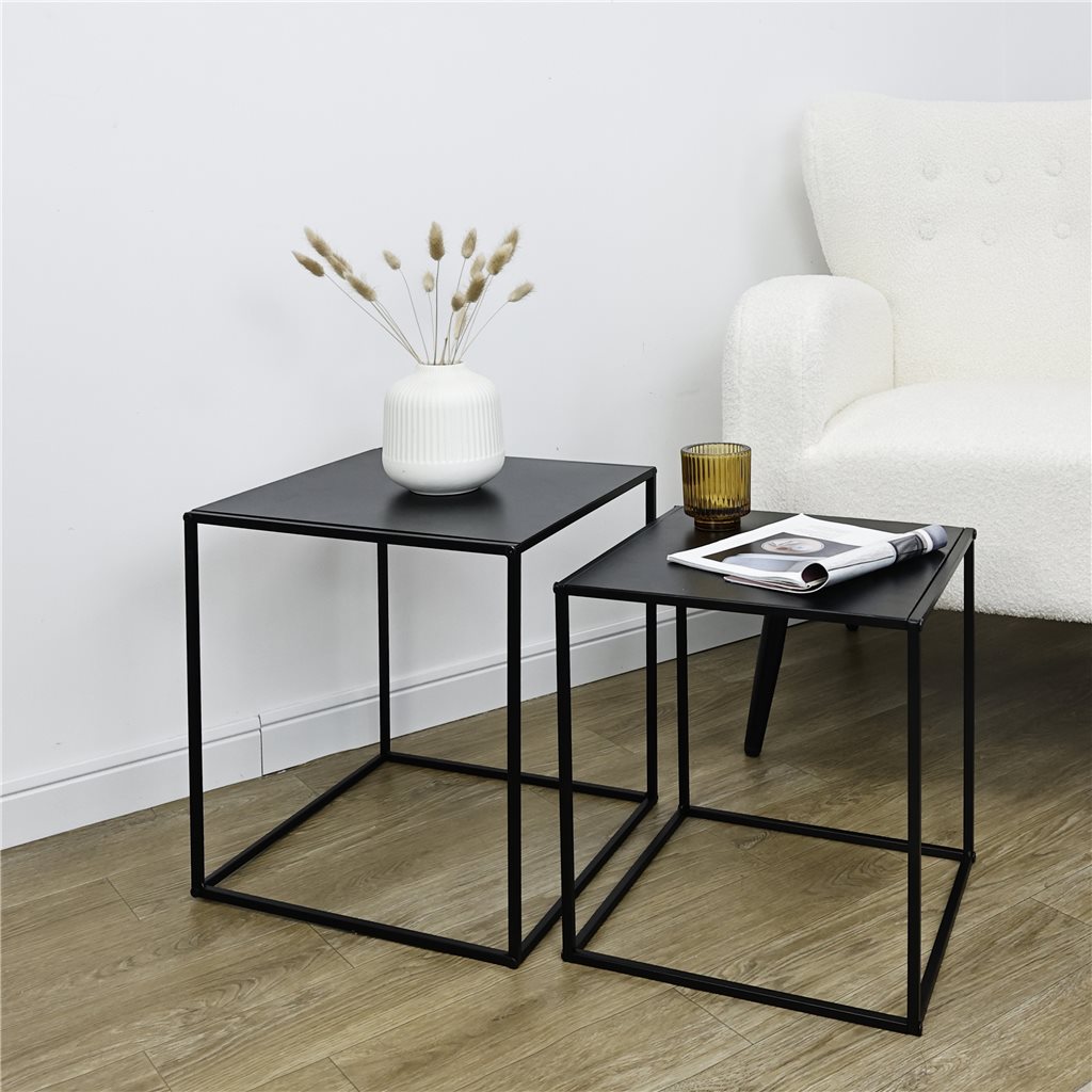 Set 2 mesas aux 38x38x41/34x34x37cm metal negro