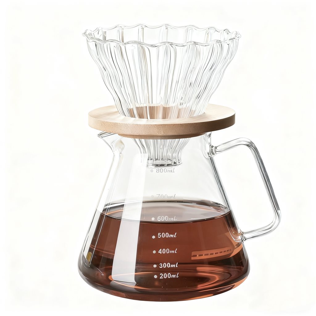 Cafetera de goteo 800ml borosilicato y bambu
