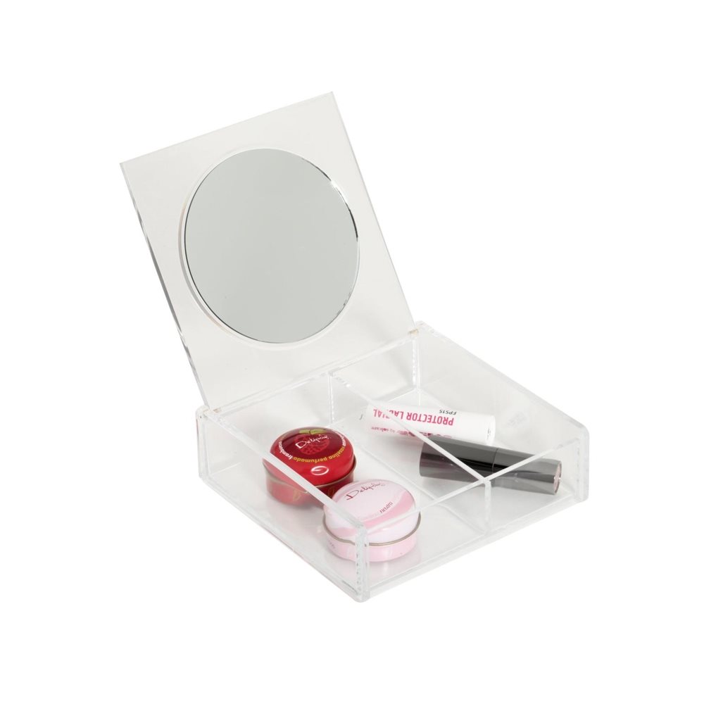 Ordena todos tus productos de dermocosmética y maquillaje para tenerlos siempre a tu alcance con este práctico organizador de la marca Compactor. De formato cuadrado y dimensiones de 15X15X5 cm, su di ... iseño en acrílico transparente con espejo incluído lo hace muy útil y combinable con los demás elementos decorativos de tu tocador. Leer más