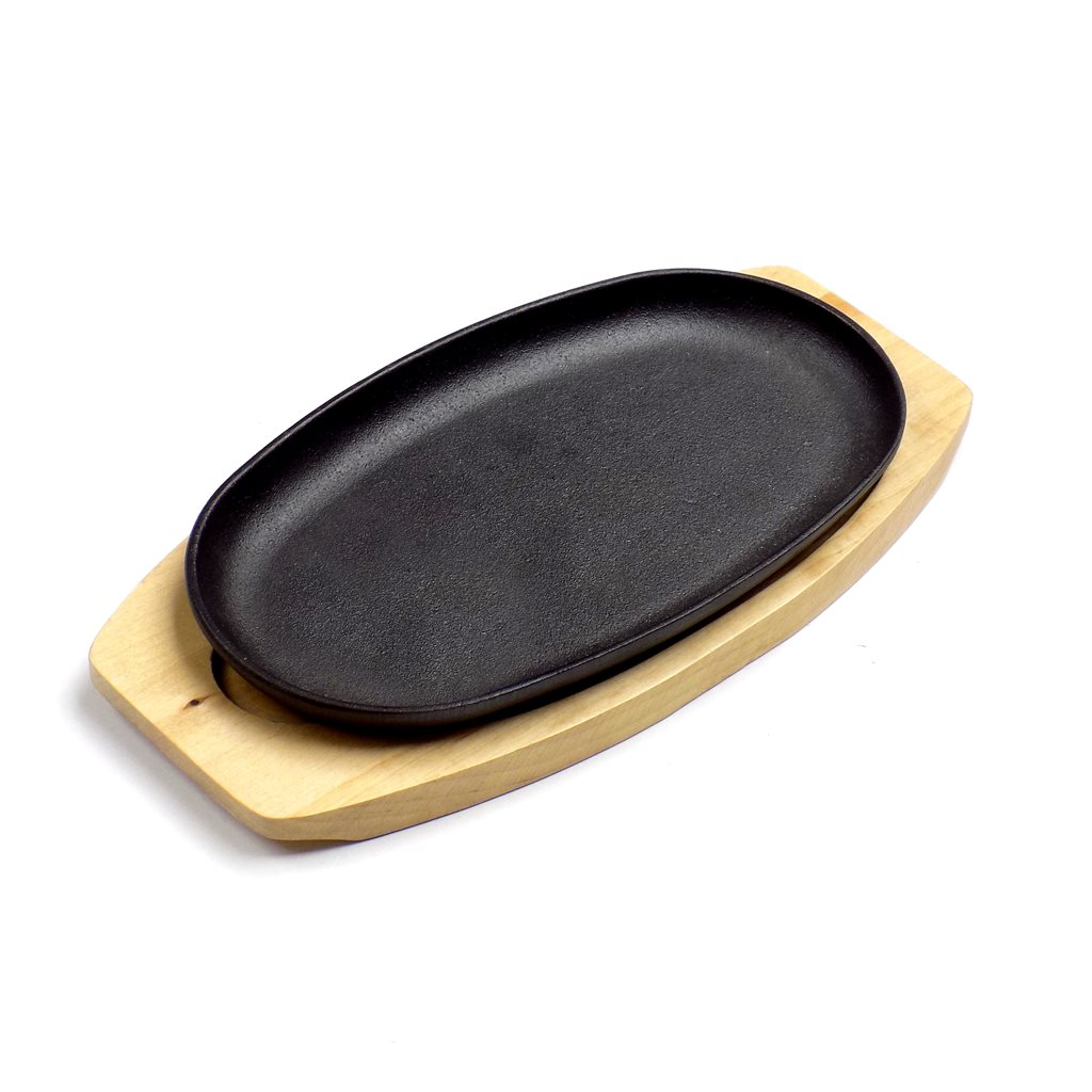 Plancha gril oval hierro c/ base mader. d24x14cm