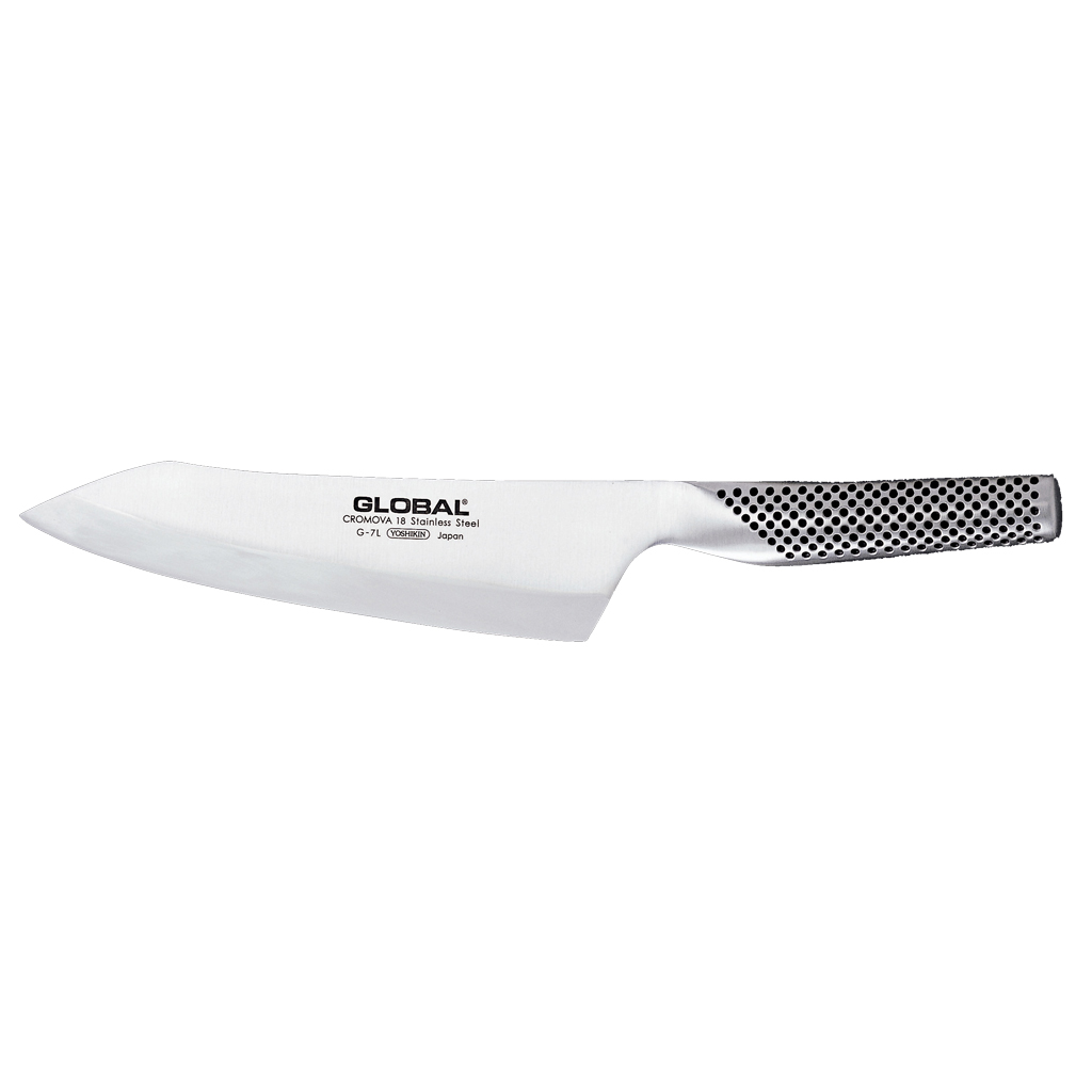Clásico en la cocina oriental, el cuchillo Deba posee una línea de corte que le permite balancearse sobre la tabla para un desempeño más cómodo y fluido. Si al excelente diseño añadimos una fabricació ... ón de calidad en acero inoxidable y un mango de superficie texturizada ergonómica, el resultado es un cuchillo profesional como este modelo Global G-7R. Es apto para diestros. Leer más