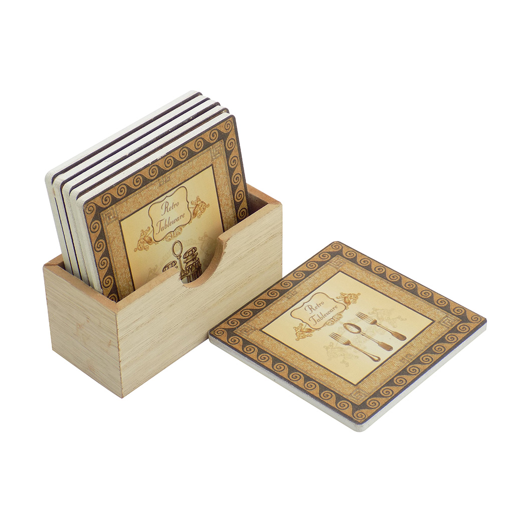 Set x6 posavaso caja madera 10x10cm "tableware"