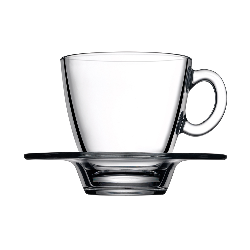 Set 6 taza de te 215cc c/ plato aqua pasabahce