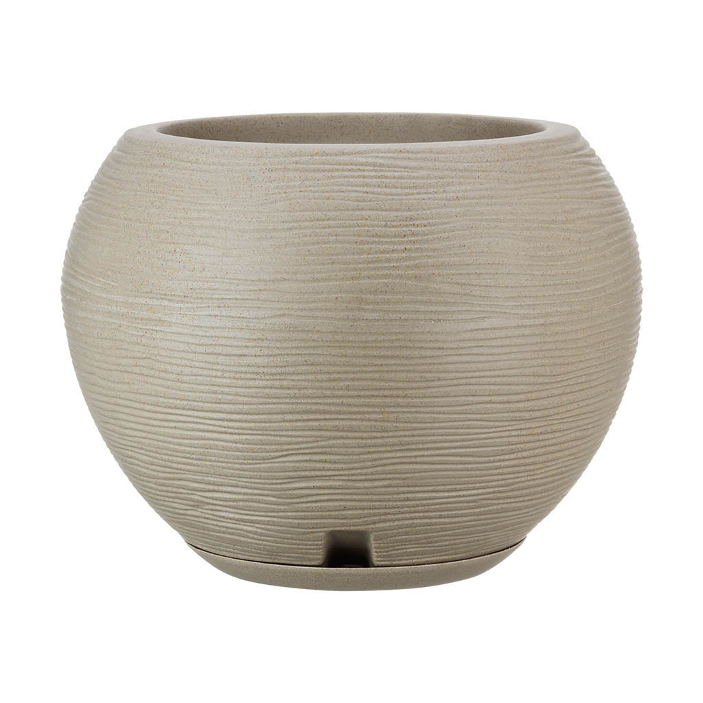 La línea Florença Sisal de la marca Floridis embellece y aporta elegancia a tus plantas de interior o exterior con su textura que recuerda a la calidez del hilo sisal. De 32x32 cm, esta maceta fabrica ... ada en material plástico de color beige y textura símil piedra es resistente y duradera. Leer más