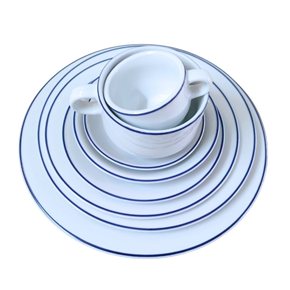 PLATO LLANO D23CM PORCELANA C/BORDE AZUL HORECA S